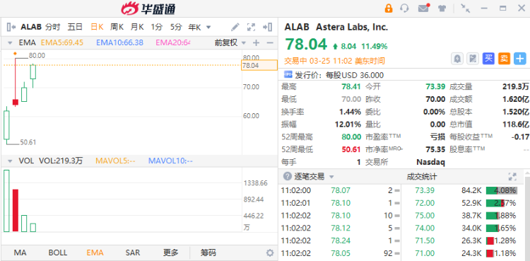 有“小英伟达”之称的AI硬件商Astera Labs $ALAB 股价今日再升11%,上市累计涨幅超过110%,最新总市值118亿美元。