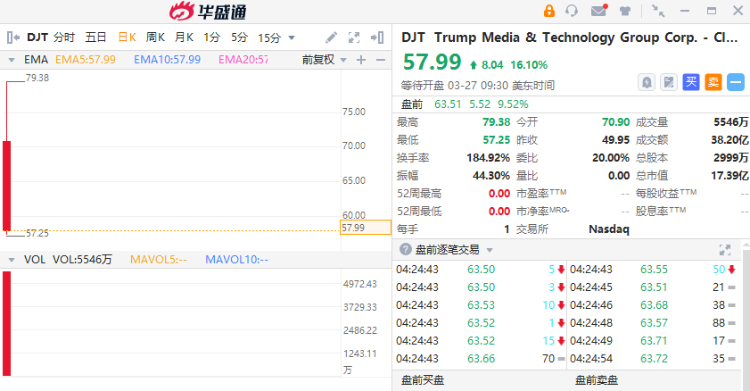 特朗普旗下媒体公司 $DJT 盘前再度涨近10%,该股昨日通过SPAC上市后股价收涨超16%。