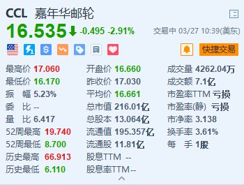 嘉年华邮轮(CCL.US)跌2.9%,报16.535美元。消息面上,嘉年华邮轮公布的第一财季亏损低于预期,截至2月29日的季度,净亏损从去年同期的6.93亿美元,即每股亏损55美分缩小至2.14亿美元,合每股亏损17美分。但公司预计巴尔的摩大桥坍塌事件将导致全年净收入受到1000万美元的负面影响。