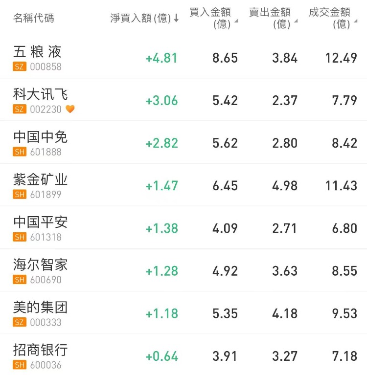 北上资金今日净买入A股23.35亿元。其中,五粮液、科大讯飞、中国中免分别获净买入4.81亿元、3.06亿元、2.82亿元。歌尔股份净卖出额居首,金额为4.32亿元。