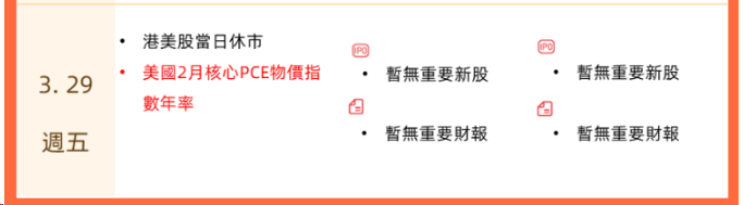 受耶稣受难日和复活节假期影响,港股将于3月29日(周五)和4月1日(下周一)休市,南向、北向通道也将关闭。美股周五休市,A股照常开市。
