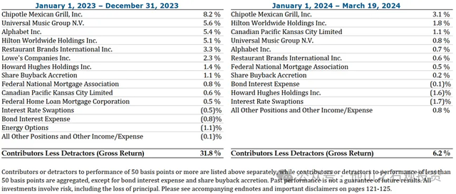 在Bill Ackman的领导下,2024年成立的潘兴广场已经度过了20年。在过去 20 年中,公司净资产收益率的年复合增长率为 16.5%,成立以来的收益率达到了2,078%。在过去的2023年,潘兴广场也实现了26.7% 的净资产收益率。目前潘兴广场的资产管理规模已经超过180亿美元。