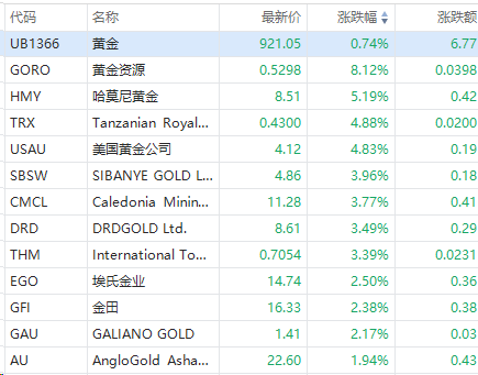 黄金股强势上涨,黄金资源涨8%,哈莫尼黄金涨超5%,美国黄金公司涨超4%,埃氏金业、金田涨超2%。消息面上,现货黄金日内刷新纪录高位至2266.68美元/盎司。