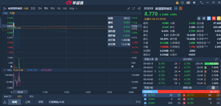 铜业股继续走高,截至发稿,万国国际矿业(03939)一度涨7%,现涨4.53%,报8.77港元;五矿资源(01208)涨2.78%,报3.33港元;中国有色矿业(01258)涨2.57%,报6.79港元;江西铜业股份(00358)涨1.41%,报14.34港元。