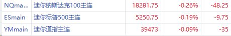 华盛资讯4月3日消息,三大期指盘前集体走弱,截至发稿,纳指期货 $NQmain 跌0.19%,标普500指数期货 $ESmain 跌0.09%,道指期货 $YMmain 跌0.26%。