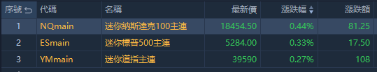 三大期指盘前集体走强,截至发稿,纳指期货 $NQmain 涨0.44%,标普500指数期货 $ESmain 涨0.33%,道指期货 $YMmain 涨0.27%。