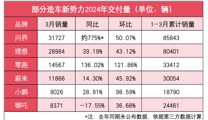 - 3月造车新势力成绩单出炉,理想继续领跑