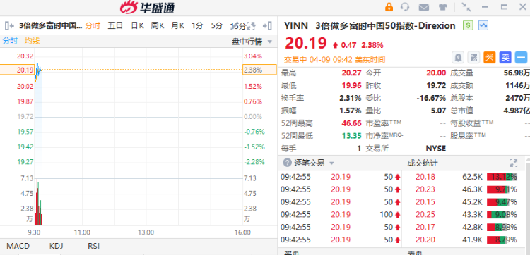 ETF方面,3倍做多富时中国50指数 $YINN 涨超2%。