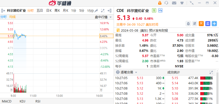 黄金、白银股集体上扬,科尔黛伦矿业涨超8%,泛美白银涨超5%,美国黄金公司涨超4%,Sibanye Stillwater $SBYSF 、金田、黄金资源、巴里克黄金、哈莫尼黄金涨超3%