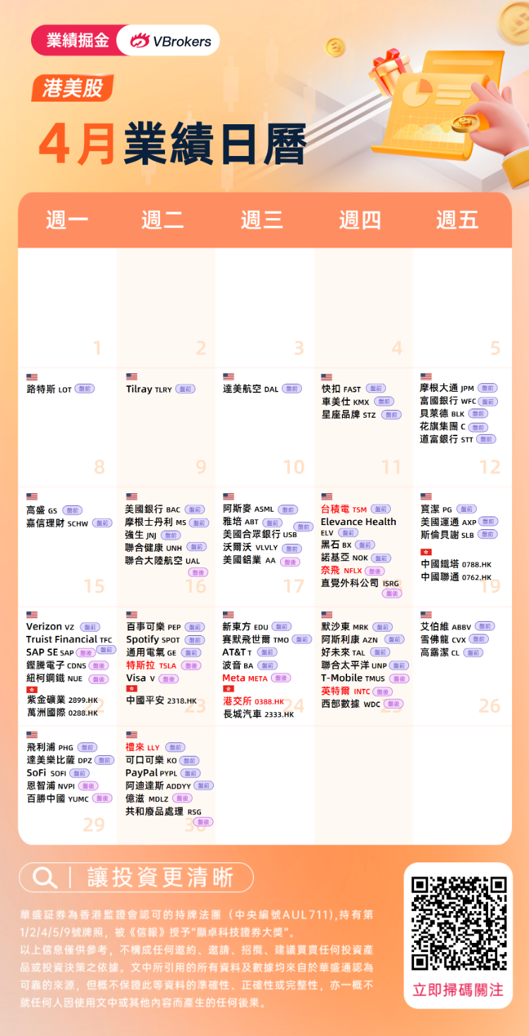 以下是4月最新业绩公布时间表,投资者可密切留意,财报披露前后的投资机会,提前规划交易策略。