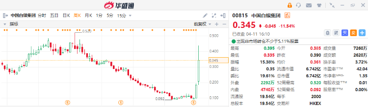 - 中国白银集团周涨超85%;过去连续五个交易日累涨约190%