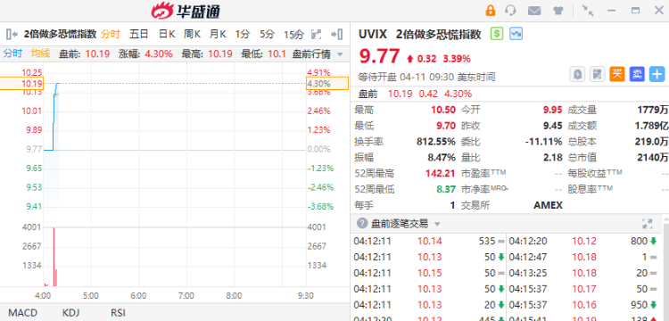 2倍做多恐慌指数 $UVIX 盘前涨超4%。