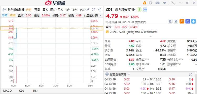 黄金股盘前走强,截至发稿,科尔黛伦矿业涨近6%,金田涨近4%,哈莫尼黄金涨超3%,巴里克黄金涨近2%。ETF方面,2倍做多金矿指数 $NUGT 涨近3%。消息面上,现货黄金站上2400美元/盎司,续创历史新高。