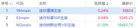 华盛资讯4月12日消息,三大期指盘前走势分化,截至发稿,纳指期货 $NQmain 跌0.10%,标普500指数期货 $ESmain 涨0.04%,道指期货 $YMmain 涨0.24%。