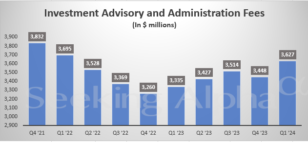 贝莱德图表:第一季度投资咨询和管理费同比增长更快