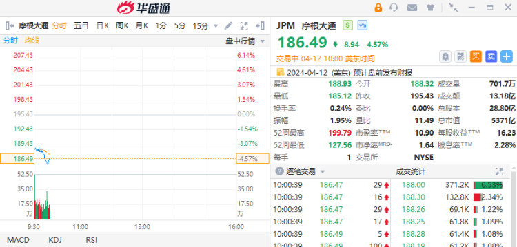 摩根大通绩后跌超4%,公司全年NII指引不及预期,警告通胀等不确定性因素持续存在。