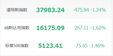 美股三大指数上周五集体收跌,道指跌1.24%,上周累计下跌2.37%,纳指跌1.62%,上周累计下跌0.45%,标普500指数跌1.46%,上周累计下跌1.56%。