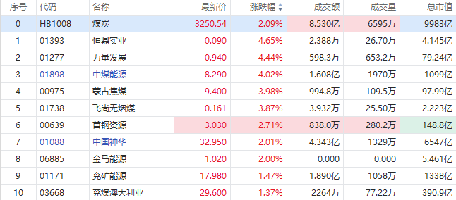 华盛资讯4月15日消息,港股煤炭股逆市走强,截至发稿,力量发展、中煤能源涨超4%,蒙古焦煤涨超3%,首钢资源、中国神华涨超2%,兖矿能源、兖煤澳大利亚涨超1%。