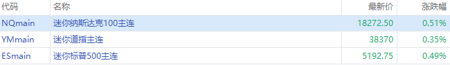 华盛资讯4月15日消息,三大期指盘前走高,截至发稿,纳指期货 $NQmain 涨0.51%,标普500指数期货 $ESmain 涨0.49%,道指期货 $YMmain 涨0.35%。