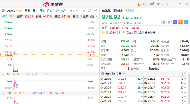 阿斯麦 $ASML 美股盘前跌超4%。阿斯麦一季度收入不及预期,新增订单额远逊预期。