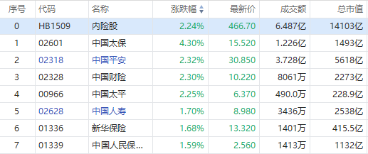 华盛资讯4月18日讯,港股内险股早盘高开高走,截至发稿,中国太保涨超4%,中国平安、中国财险、中国太平均涨超2%。