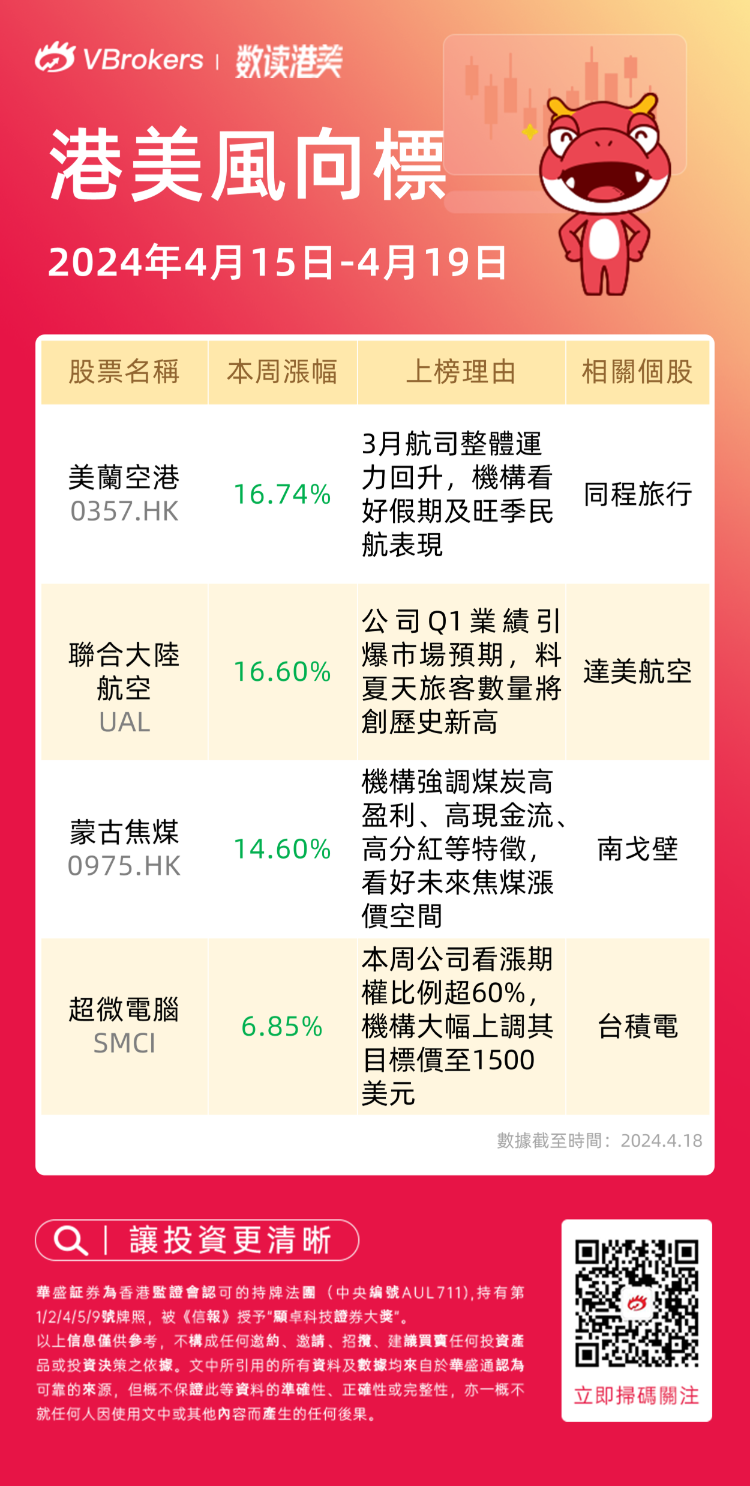 港美风向标 | 美兰空港周涨超16%,机构看好假期及旺季民航表现;蒙古焦煤周涨近15%
