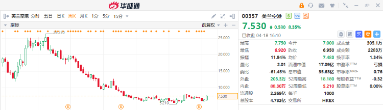 - 美兰空港是一家主要从事机场及配套酒店运营及提供相关服务的中国公司;本周四公司股价大涨8.35%,截至发稿,周累涨16.74%