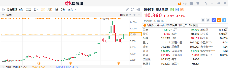 | 南戈壁 | 7.82% | 此前公司发布年度业绩,股东应占净溢利90.8万美元,同比扭亏为盈;机构称持续看好煤炭行业长期投资价值 |