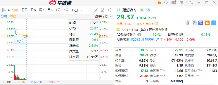 理想汽车 $LI 涨超2%,理想L6产品发布会召开,理想L6 Pro版本售价24.98万元、Max版本售价27.98万元。5月5日前还有2万元权益优惠。将于5月开启大批量交付。