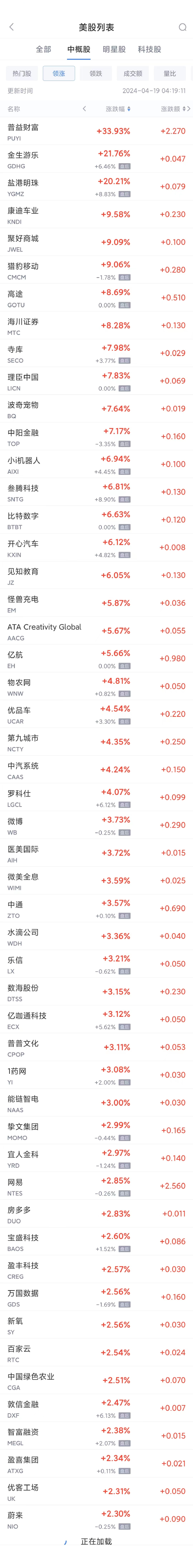 领涨中概股列表: