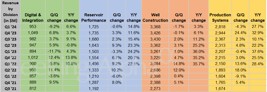 斯伦贝谢图表:第一季度生产系统同比增长约28%,中东/亚洲收入增长29%