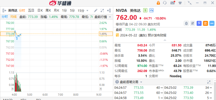 华盛资讯4月22日消息,三大期指盘前集体反弹,截至发稿,纳指期货 $NQmain 涨0.39%,标普500指数期货 $ESmain 涨0.30%,道指期货 $YMmain 涨0.31%。
