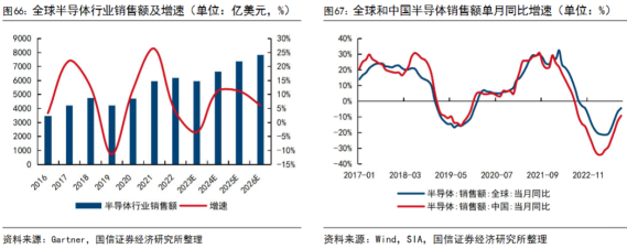 从供需的视角,在2023年库存逐渐出清的过程中,半导体销售增速降幅已经出现明显收窄,出现上行信号;以及参考行业历史周期规律,行业周期或已触底,有望迎来供需结构改善、价格上行、业绩增加的拐点。