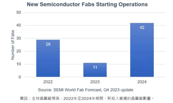 2022年至2024年期间,全球半导体产业计划将有82座新设施投产,其中2023年及2024分别有11座及42座投产,涵盖了4寸(100mm)到12寸(300mm)晶圆的生产线。SEMI预计,2024年全球半导体产能将增加6.4%。行业或有望在如阿斯麦期望般,在2025年迎来强劲增长。
