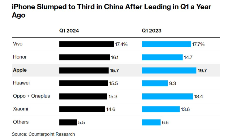 iPhone在华销量锐减19%!美银仍将苹果列为2024年首选股