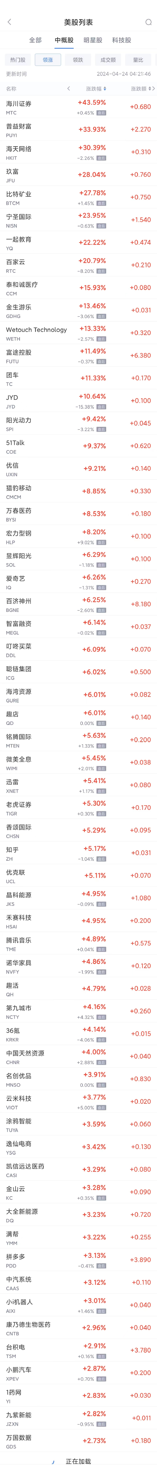 领涨中概股列表: