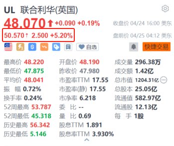 格隆汇4月25日|联合利华(UL.US)美股盘前涨5.2%,报50.57美元。联合利华第一季度营业额从去年同期的147.5亿欧元增至150亿欧元,高于市场普遍预期的146.6亿欧元;基础销售额同比增长4.4%,市场预期增长3.0%;销量增长2.2%,市场预期增长1.2%。强势品牌(占总营业额的75%)销售额增长6.1%,销量增长3.8%。