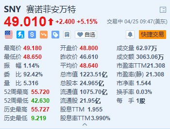 格隆汇4月25日|赛诺菲(SNY.US)涨5.15%,报49.01美元。赛诺菲第一季度营收113.64亿美元,前值为109.71亿美元,预期值为110.7亿美元;每股收益为0.97美元,前值为1.16美元,预期值为0.94美元。其中,赛诺菲血友病药物Altuviiio帮助推动了这一业绩,自2023年3月上市以来,该药物在美国的需求出乎意料地强劲。