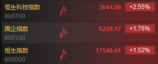 4月26日消息,今日港股三大指数高开高走,截至发稿,恒生指数涨1.52%,报17546.61点,恒生科指涨2.55%,国企指数涨1.76%。盘面上,科网股普遍上涨,小米、美团涨超3%,京东涨近3%,腾讯、百度、阿里巴巴、网易涨约2%;光伏股涨幅居前,福耀玻璃涨超11%;国联证券涨超15%领涨中资券商股,拟发A股收购民生证券;石油股齐涨,中海油绩后大涨近6%创历史新高;黄金股高涨,招金矿业涨超6%领衔;汽车、机械、电子零件等板块亦涨幅明显。