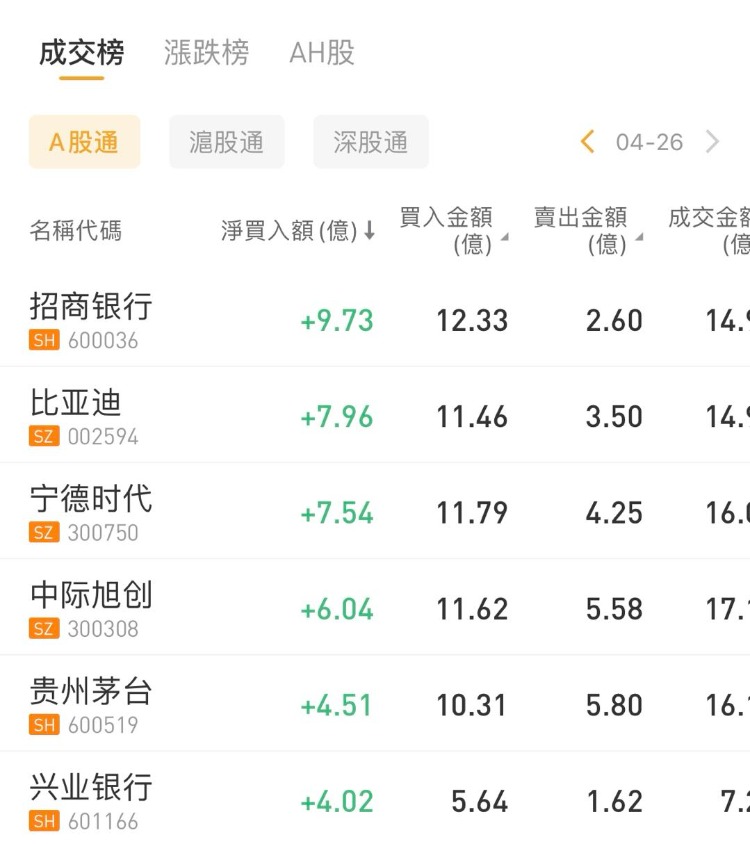 北向资金今日大幅净买入224.49亿元。招商银行、比亚迪、宁德时代分别获净买入9.73亿元、7.96亿元、7.54亿元。江苏银行净卖出额居首,金额为9.99亿元。