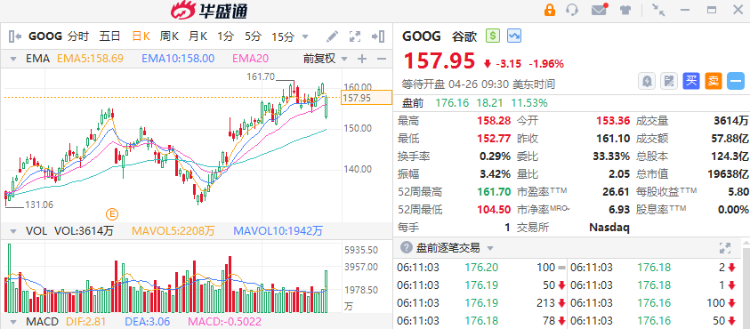 公布财报后,盘后谷歌母公司Alphabet的股价上涨了11%以上,而微软的股价上涨了近5%。