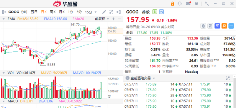 2、谷歌 $GOOGL 盘前大涨超11%,披露超预期Q1业绩。该股隔夜跌幅1.97%,当日期权成交总量达65万张,环比激增3倍。未平仓量有272万张。