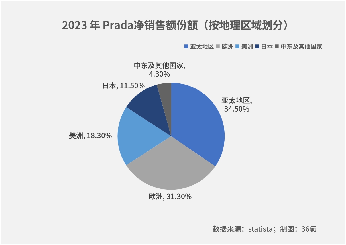 分地区来看,包括中国在内的亚太市场销售额同比增长16%至3.96亿欧元,中国成为Prada集团第一大市场。此外,欧洲市场和日本市场也获得了不错的增长,欧洲市场增长18%至2.95亿欧元,日本市场增长46%至1.45亿欧元。