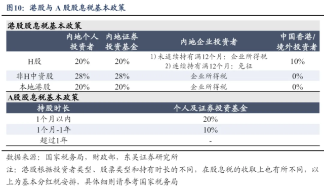 此外,两会期间,香港证监会主席提议优化互联互通股息红利税务安排,降低港股通个人投资者的红利税收水平,市场政策展望加强。由于内地个人投资者投资港股相对A股的分红税差额最高可达28%,因此优化空间尚存。经估算,筛选恒生港股通中的50只稳定分红个股为组合代表,若将23年内地投资港股的红利税统一调整为10%,则整体法下组合税后股息率将由5.3%升至5.5%,增厚约400亿港元红利收益;若境内外红利税全额豁免,则税后股息率将升至5.6%,提升将近700亿港元的红利回报。因此如果后续红利税政策得以优化,有望吸引更多内外资入市。