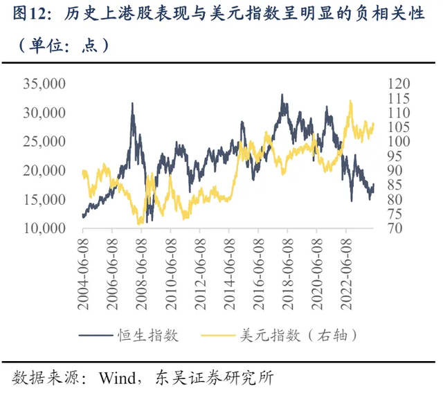 从中长期维度来看,有两个影响港股长期走势的核心变量正在悄然发生变化。一是中美名义增速差的变化,24年中美名义增速差的收敛将是中国资产价格修复的核心因素,且港股受联系汇率的影响,对海外宏观环境的变化更为敏感,反应往往更强。二是美元及美元信用的变化,历史上港股表现与美元指数呈明显的负相关性,当前美元“易下难上”,内在价值受损或提示降息周期打开后美元的贬值“一触即发”,港股估值有望迎来系统性抬升。