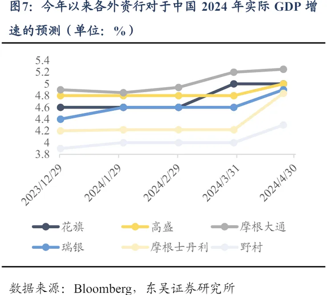 若仅是估值“便宜”,并不能成为资金加仓的理由,港股的上涨还隐含了国内基本面/基本面预期的向好。宏观经济方面,一季度国内经济表现较好,GDP增速高于预期、PMI重返景气区间、出口亮眼,外资行对于中国24全年GDP增速的预测普遍上修。微观层面,腾讯、美团、京东等港股互联网企业23Q4盈利增速高于预期,恒生指数EPS一致预测较去年年末提升2.84%,且瑞银、高盛等外资行上调港股评级,均体现市场对于基本面预期的改善。