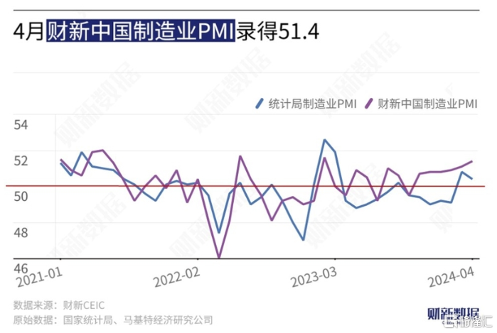 4月30日公布的2024年4月财新中国制造业采购经理指数(PMI)录得51.4,高于3月0.3个百分点,再度创2023年3月来新高,反映制造业生产经营活动继续加快扩张。