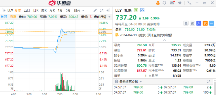 特斯拉盘前回调逾2%,昨日股价暴涨超15%;礼来盘前拉升7%,Q1季报显示减肥药销售额超预期。