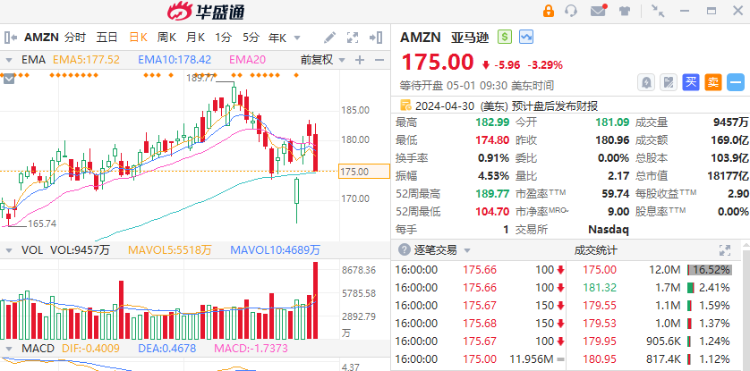 财报发布后,原本收跌3.29%的亚马逊盘后一度飙涨超6%,不过随后收窄至1%。
