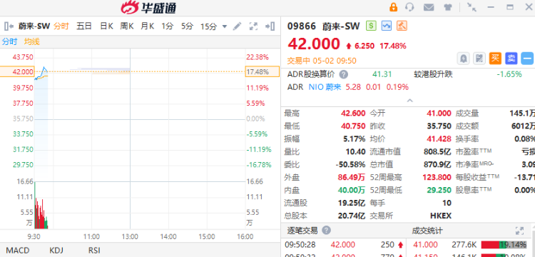 华盛资讯5月2日消息,港股汽车股早盘集体走强,截至发稿,蔚来-SW涨超17%,零跑汽车涨超5%,比亚迪股份涨超2%,小鹏汽车-W、长城汽车跟涨。